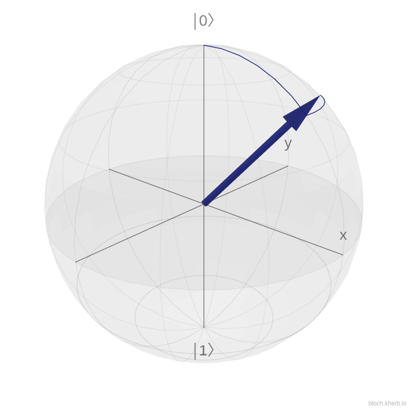 If you did not already guess it, the Pauli X, Y and Z gates are rotations around their respective axis. The X gate transform \(|0\rangle\) to \(|1\rangle\) which corresponds to \(\pi\) rotation