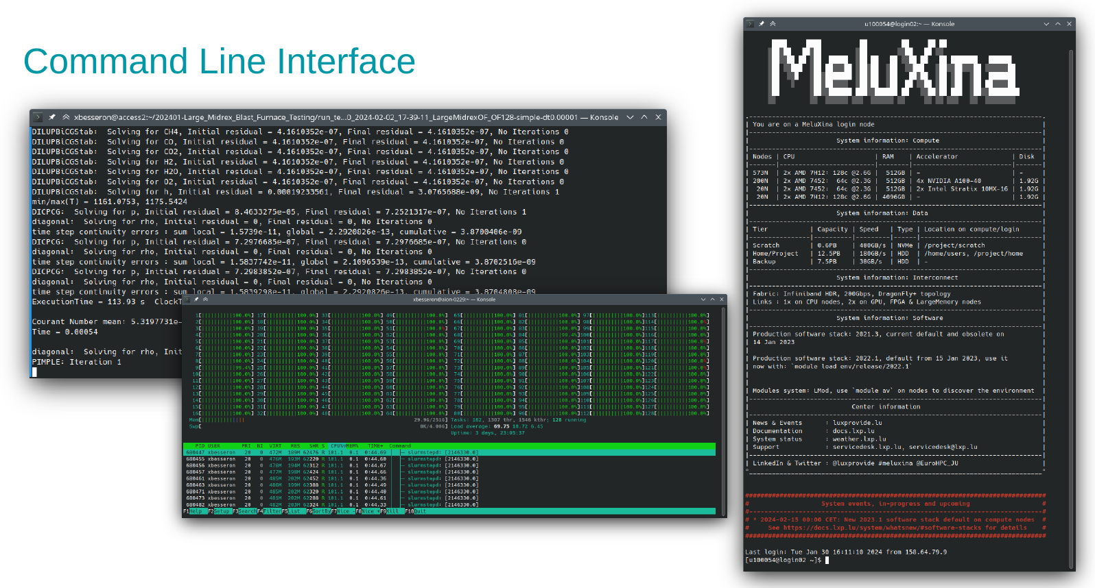 The command line interface is often required to use MeluXina.