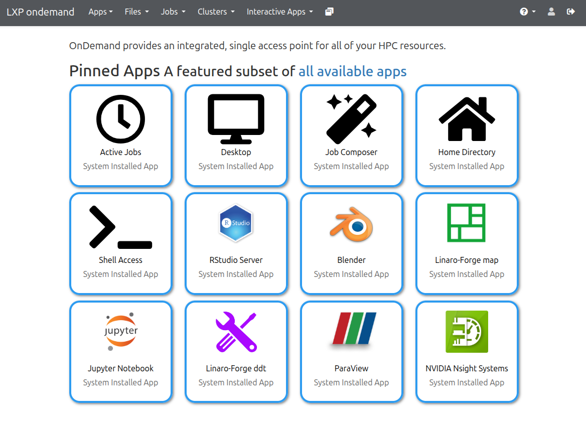 Upon successful login, you'll land on the Open OnDemand Welcome page with access to: