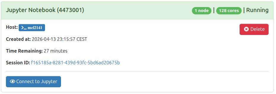 Similar to ParaView, JupyterLab is started from the MeluXina web-portal, allowing you to use the Jupyter interface from your local browser.