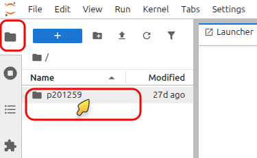 In the JupyterLab file browser at the top left, navigate to
